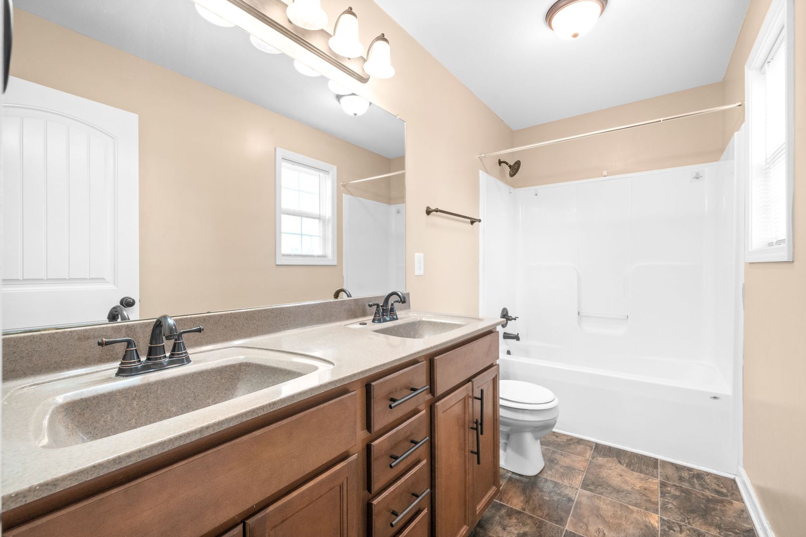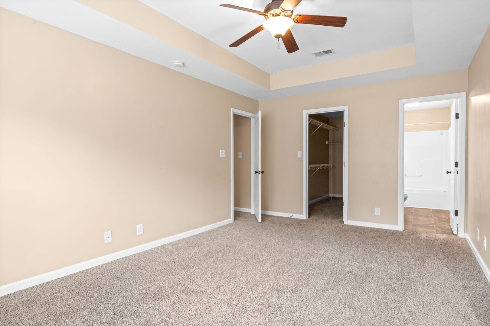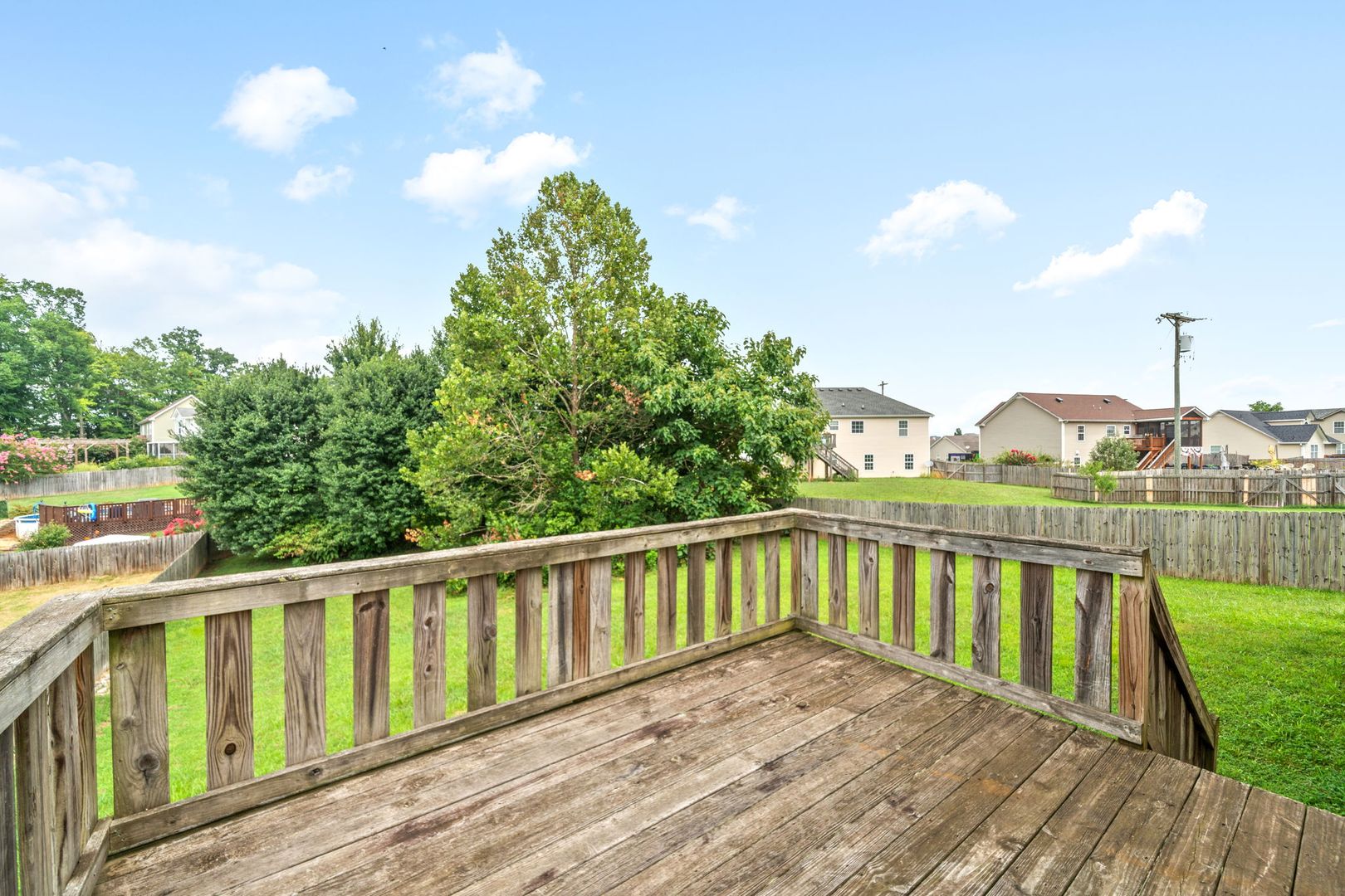 This property boasts 2.5 bathrooms, including a primary bath with double vanities, ensuring ample space for your daily routines. The home features a spacious dining area and an eat-in kitchen, perfect for hosting gatherings or enjoying a casual meal. The bedrooms are designed with walk-in closets and ceiling fans, providing comfort and ample storage. The flooring is a tasteful mix of carpet and vinyl, adding to the home's overall appeal. Outside, you'll find a beautiful deck, perfect for outdoor relaxation.