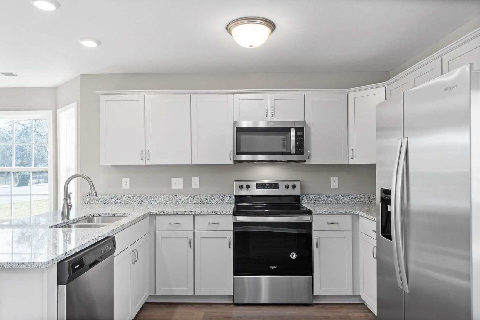 *** END UNIT TOWN HOME - QUIET DEAD END STREET W/ A PRIVATE VIEW *** in Clarksville, TN offers a modern 2-bedroom, 2.5-bath layout with an end-unit location and a bay window that brings in natural light. The kitchen features stainless appliances, smooth-top stove/oven, built-in microwave, dishwasher, refrigerator with ice maker and water dispenser, granite countertops and ample cabinet space. An adjacent dining area and central heat (heat pump) plus central air provide year-round comfort. Washer/dryer connections are included for convenience. Located with easy access to I-24. No pets.