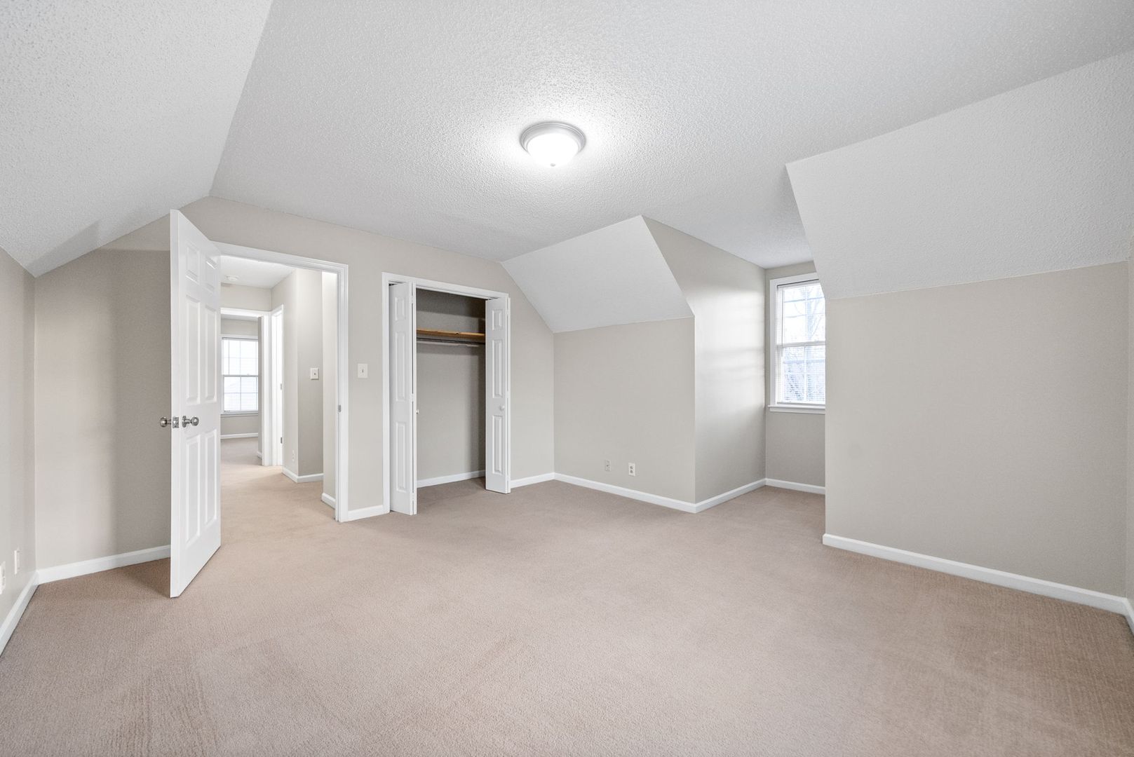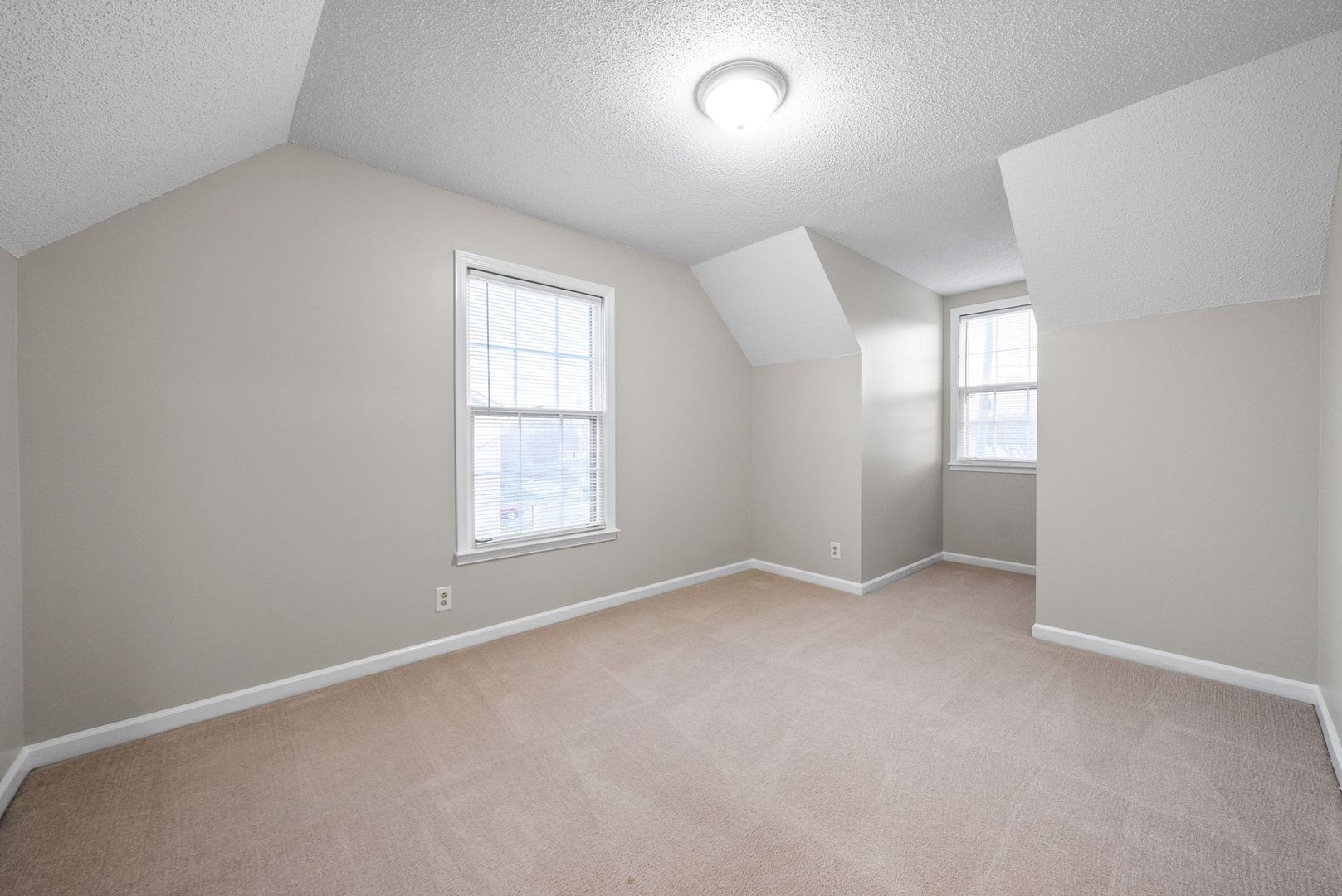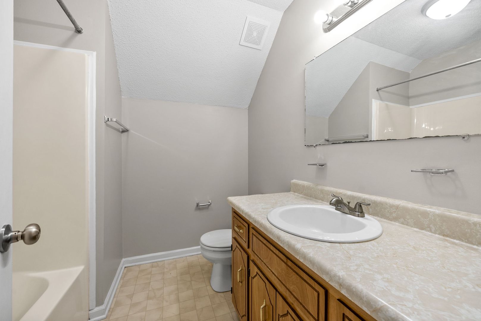 This home boasts four spacious bedrooms, each equipped with walk-in closets and ceiling fans for your comfort. The house features two full bathrooms, a partially finished basement, and a two-car garage, providing ample space for all your needs. The eat-in kitchen, complete with a pantry, is perfect for those who love to cook. The house also offers washer and dryer connections for your convenience. The flooring is a mix of laminate and carpet. The exterior of the house features a covered front porch and a back deck, perfect for outdoor relaxation or entertaining. The property is enclosed by a chain-link fence.